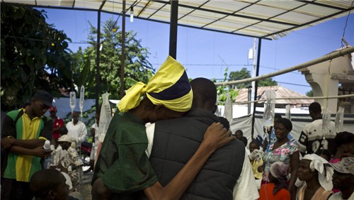 2010年11月8日,海地圣马克,霍乱病人在医院接受治疗。海地霍乱疫情目前已经造成至少544人死亡。当地卫生部门正在对新增的120多名霍乱疑似患者进行检查。