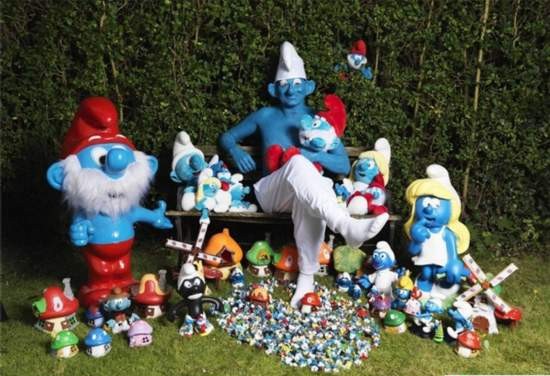 来自诺丁汉的Stephen Parkes获得这一奖项,他共收集了1061个“蓝精灵”。图片是他和部分藏品合影。