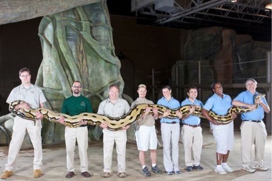 美国俄亥俄州一家动物园中生活着目前人类捕捉到的世界上身体最长的蛇――一条长达7.32米的蟒蛇。网纹蟒“绒毛(Fluffy)”被认为是笼中蛇之“寿星”。