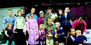 图为弗拉基米尔夫妇家的全家福照片(大儿子不在其中)。据美联社报道,一对从乌克兰移民到美国加州的夫妇自从24年前生下第一胎后,就一发不可收。在过去24年里总计生下17名孩子,一举打破了美国“最大家庭”的纪录。据称,结婚半年之后,妻子基娜伊拉达终于如愿以偿地怀了孕并生下儿子一名,从此她竟一发不可收拾,几乎平均每1—2年都要生下一个宝宝。现在,每天晚上在孩子们完成家庭作业后,这个大家庭会一起用俄语唱基督教歌曲。